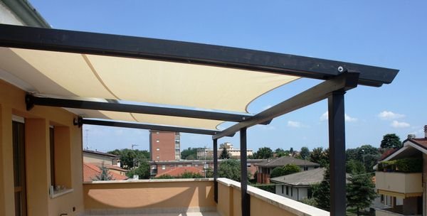 Có thể sử dụng mái che sân thượng dạng cố định bằng tôn để che mưa, nắng, bảo quản